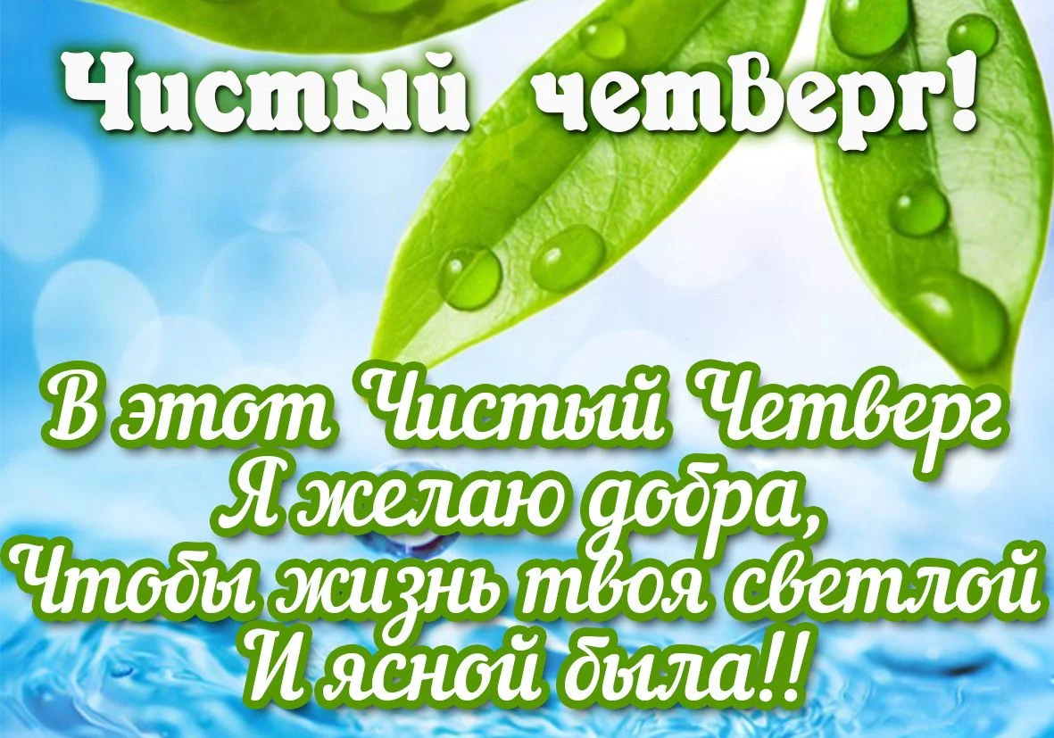 С Чистым четвергом! Пусть этот день уберет из вашей жизни весь негатив и черные полосы, жизнь пусть станет чистой и белоснежной! Радости, счастья, успехов, здоровья, семейного благополучия, добра, любви!