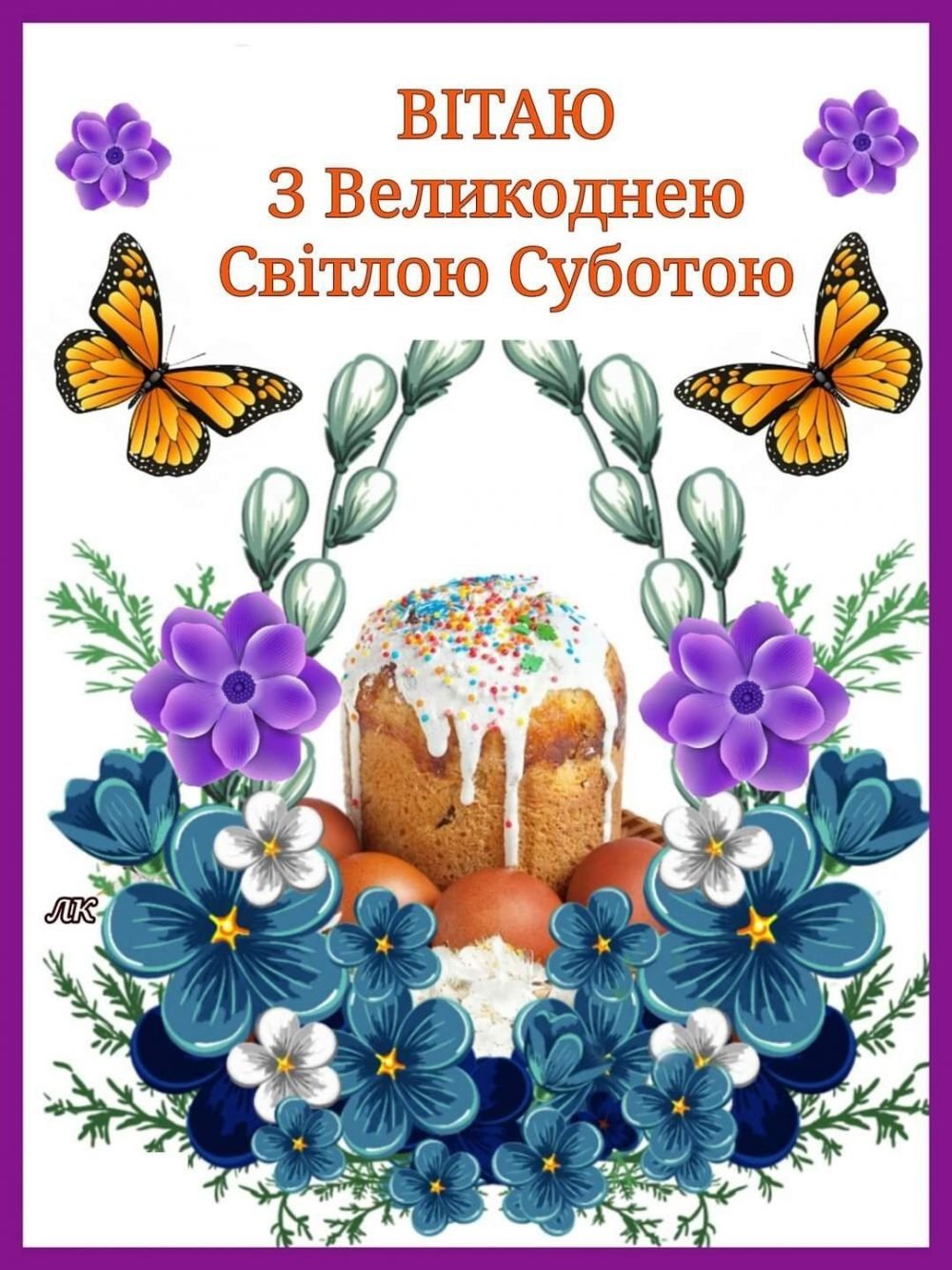 Вітаю вас з великодніми святами! Нехай у цю Велику Суботу ваш дім наповниться миром, теплом і радістю. Хай освячені паски принесуть вам Божий захист та благословення на усі справи. Зі Страсною суботою!