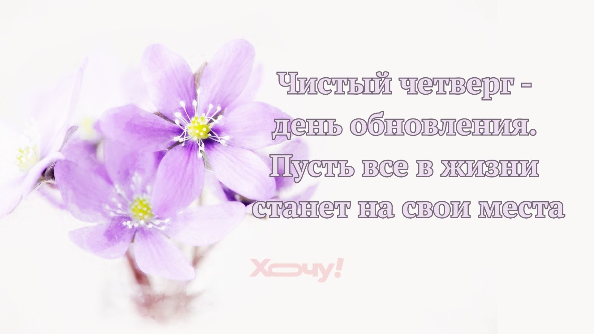 Поздравляю вас с Чистым четвергом! Желаю вам душевного спокойствия, крепкого здоровья, тепла и счастья. Пусть в вашем доме всегда царят любовь, понимание и уют, а в страну скорее придет победа.