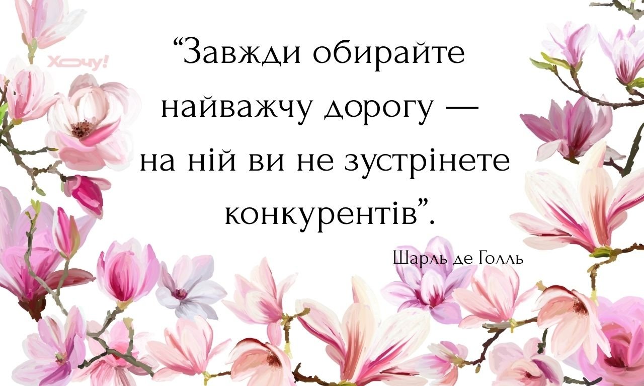 • "Всегда выбирайте самую тяжелую дорогу — на ней вы не встретите конкурентов". — Шарль де Голль