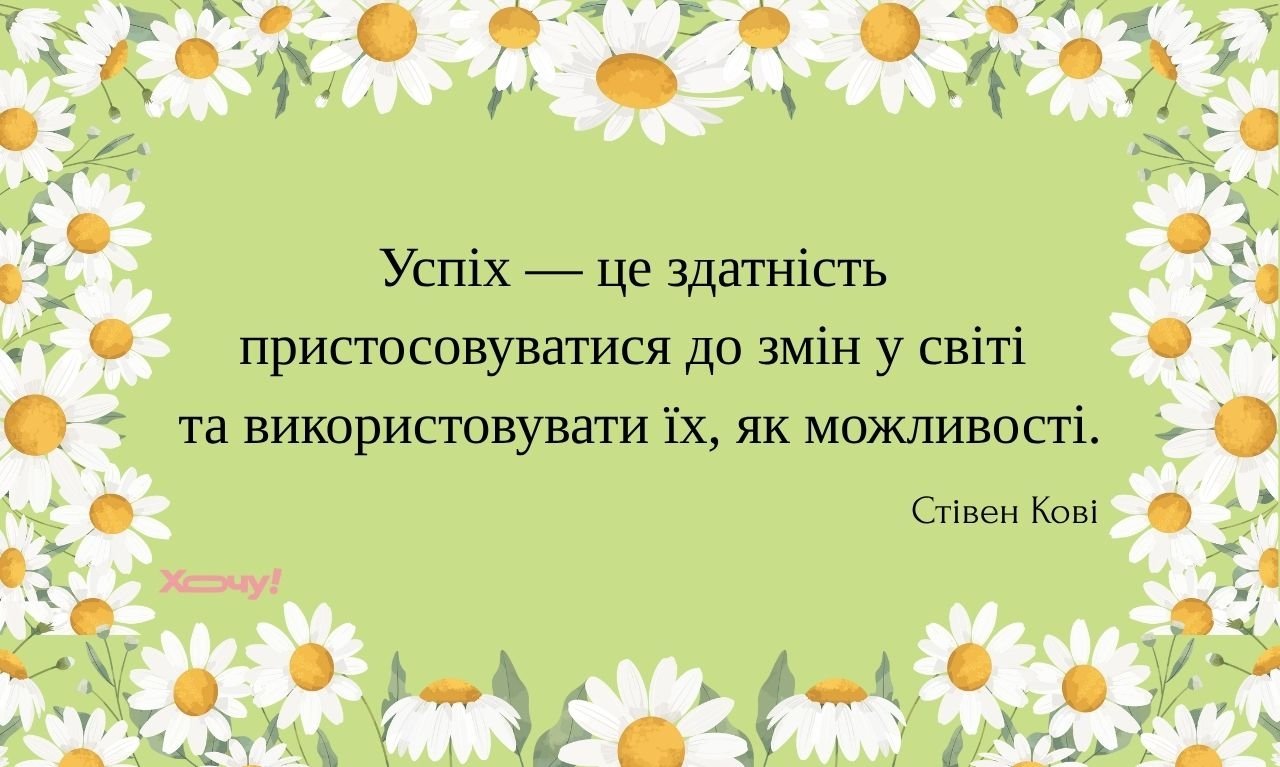 • "Успех — это способность приспосабливаться к изменениям в мире и использовать их как возможности". — Стивен Кови