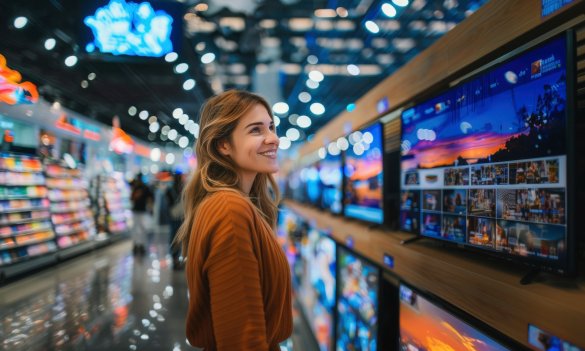 Такое изображение специально адаптировано под яркое освещение торгового зала. В результате даже средняя модель может выглядеть эффектно, а премиальные OLED или QLED-панели кажутся почти идеальными.