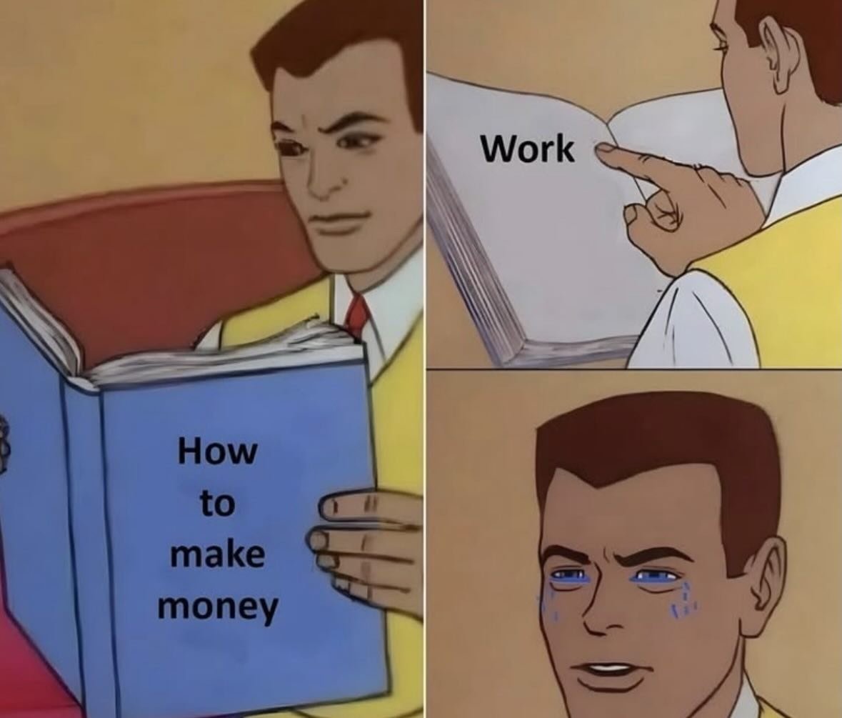 Купил книгу "Как стать миллионером в один день". Теперь ищу книгу "Как выжить на сдачу от покупки этой книги".