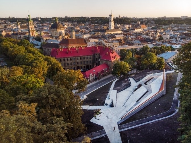 Это один из самых современных и знаковых мемориалов Украины. Расположен на холмах улицы Кривоноса. Это открытое пространство с многоуровневыми террасами и смотровыми площадками. Для мемориала использовали кортеновскую сталь, которая со временем ржавеет, символизируя горящие баррикады и раны в сердце нации. На потолке выгравировано 107 портретов героев. В каждом портрете отверстие для цветка.