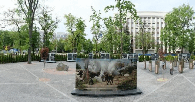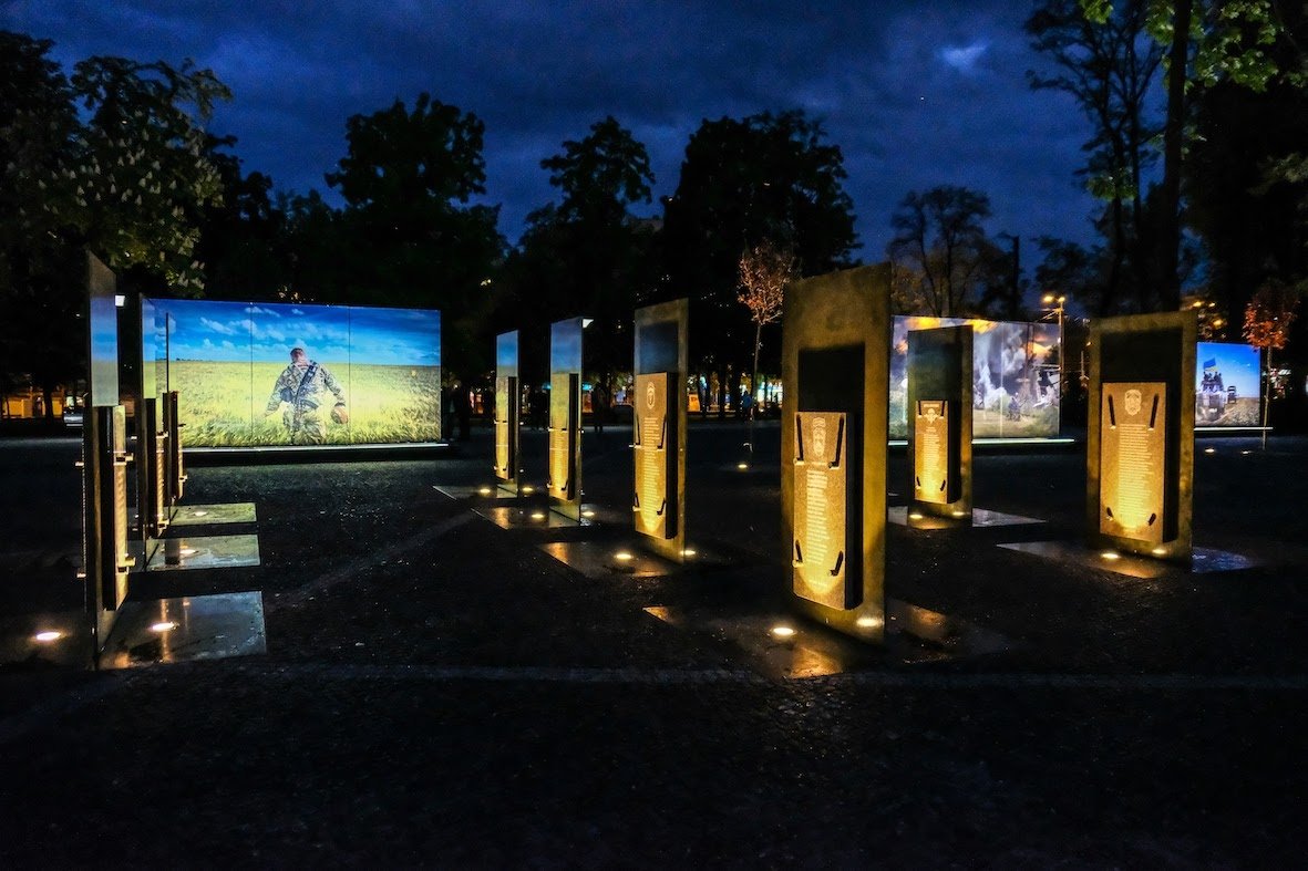 Один из самых больших мемориальных комплексов, посвященный как Небесной Сотни, так и погибшим воинам АТО. Стеклянные стелы с подсветкой и фотографиями, создающими эффект присутствия и вечной памяти.