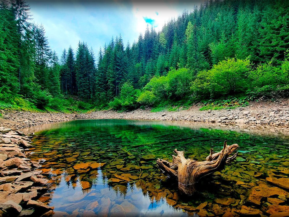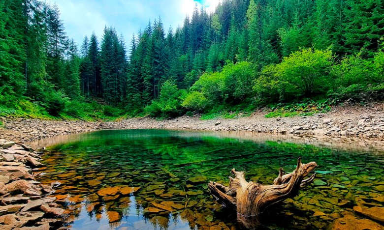 Это высокогорное озеро ледникового происхождения, скрытое в густых хвойных лесах Ивано-Франковской области. Вода в озере имеет невероятный бирюзово-изумрудный оттенок. Она настолько прозрачна, что на дне виден каждый камень и затонувший дерево, хотя глубина озера может достигать 4-5 метров.