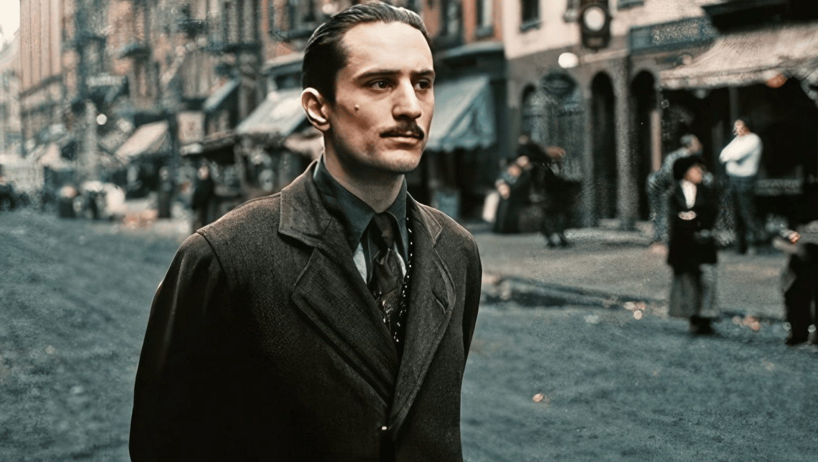 В продолжении культовой гангстерской саги Роберт Де Ниро олицетворяет молодого Вито Корлеоне — еще неопытного, но уже проницательного мужчину, которому предстоит стать легендарным мафиози. Его герой только начинает свой путь в криминальном мире Нью-Йорка. Скромность, тихая решительность и скрытая харизма делают Вито особенно харизматичным. За эту роль Де Ниро получил свой первый "Оскар".