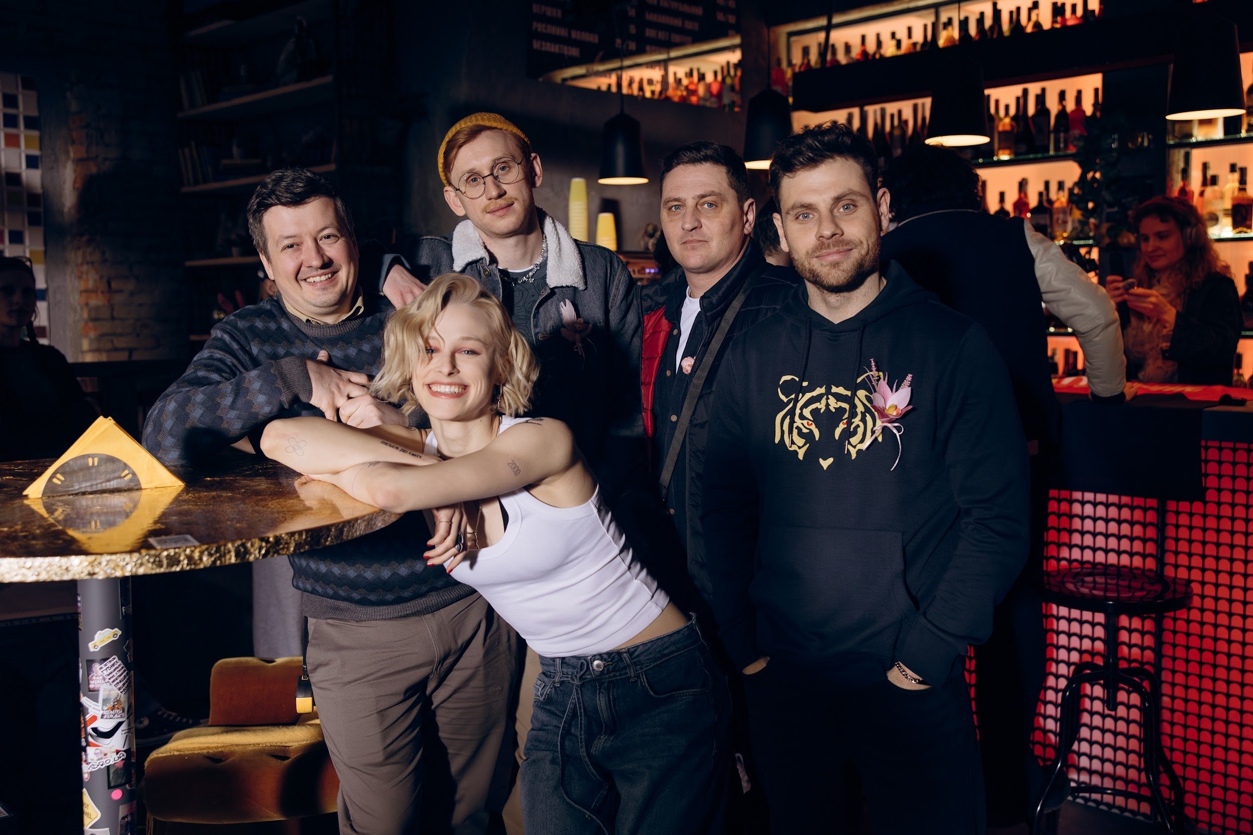 Анастасия Король с Александром Рудинским, Вячеславом Довженко, Артуром Логаем и Славой Бабенковым. Фото: пресс-служба