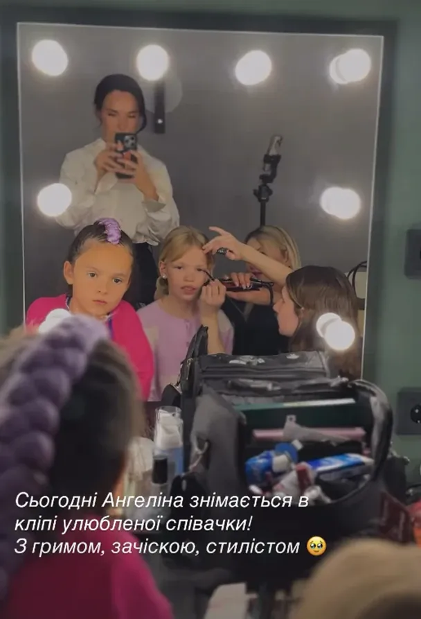 По словам звездной мамы, для дочери это событие стало настоящим праздником, ведь оно очень любит песни исполнительницы и давно мечтало с ним познакомиться. В Instagram Инна Мирошниченко опубликовала фотографии, на которых Ангелину готовят к съемкам, и поделилась трогательными впечатлениями.