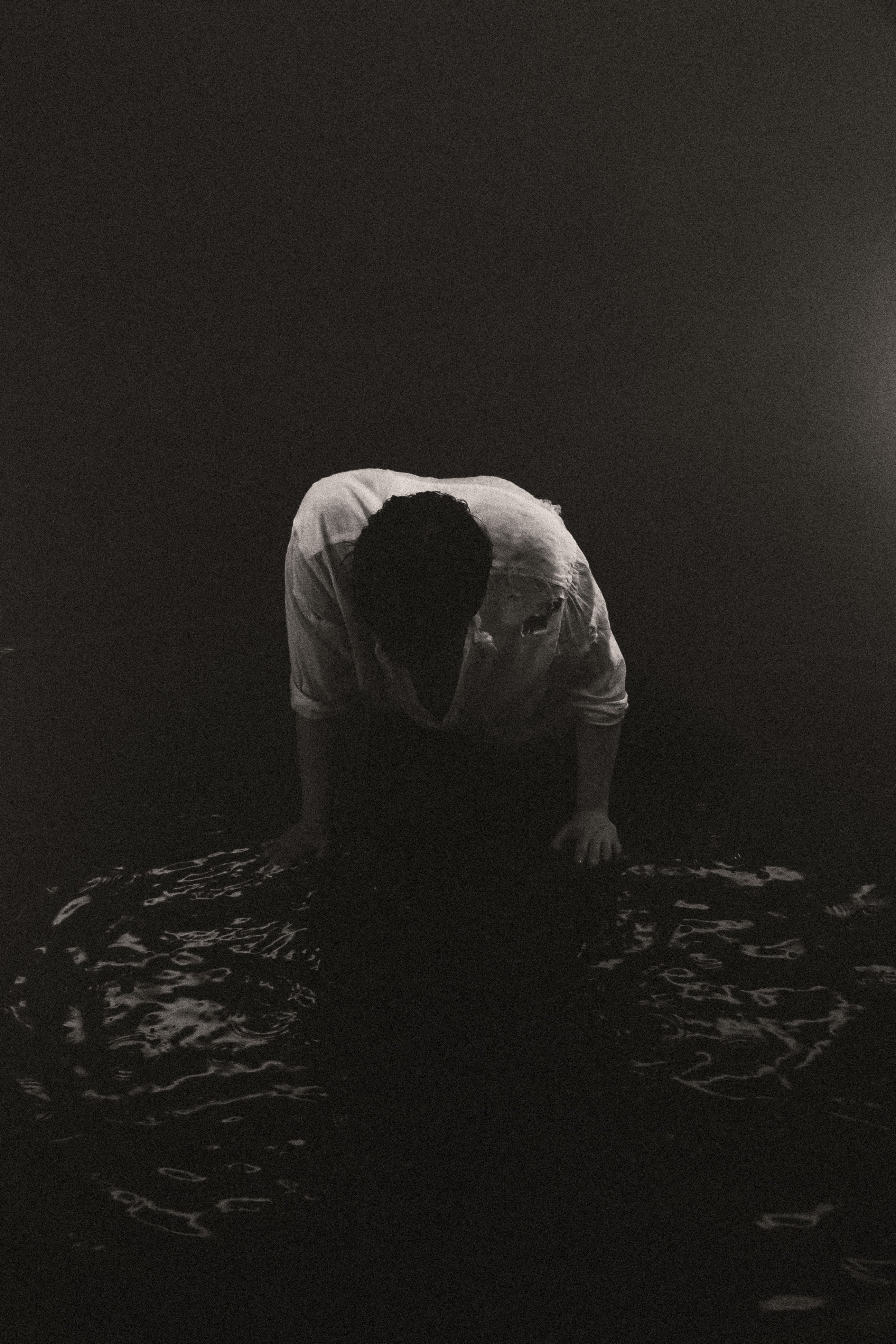 В другом эпизоде певец наклоняется над водой. Темные оттенки и контрастная игра света и тени создают эффект настоящего кино.