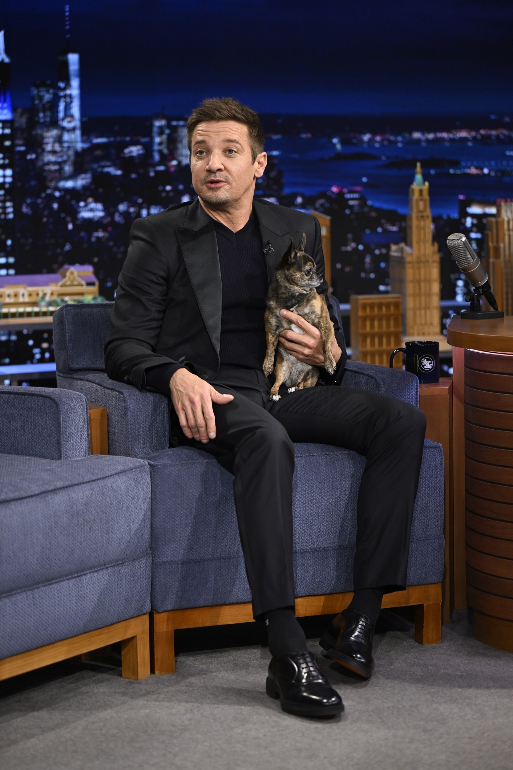 54-летний американский актер Джереми Реннер снялся в 2126 эпизоде ночного ток-шоу The Tonight Show Starring Jimmy Fallon, который вошел в 12 сезон. Однако в кресле напротив ведущего он сидел не один - на руках он держал свою собаку Херши.