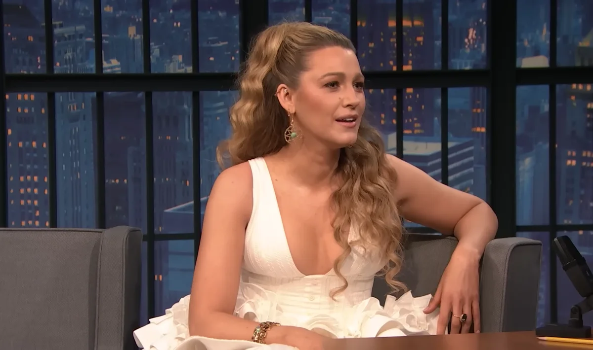 Блейк Лайвли без кольца. Скрин из шоу Late Night with Seth Meyers