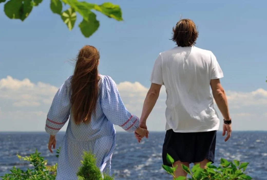 Фотография Библий опубликовала в Instagram. На романтическом снимке пара стоит спиной к камере, держась за руки и глядя вдаль. За ними открывается панорама города, которую они, похоже, любуют вместе.