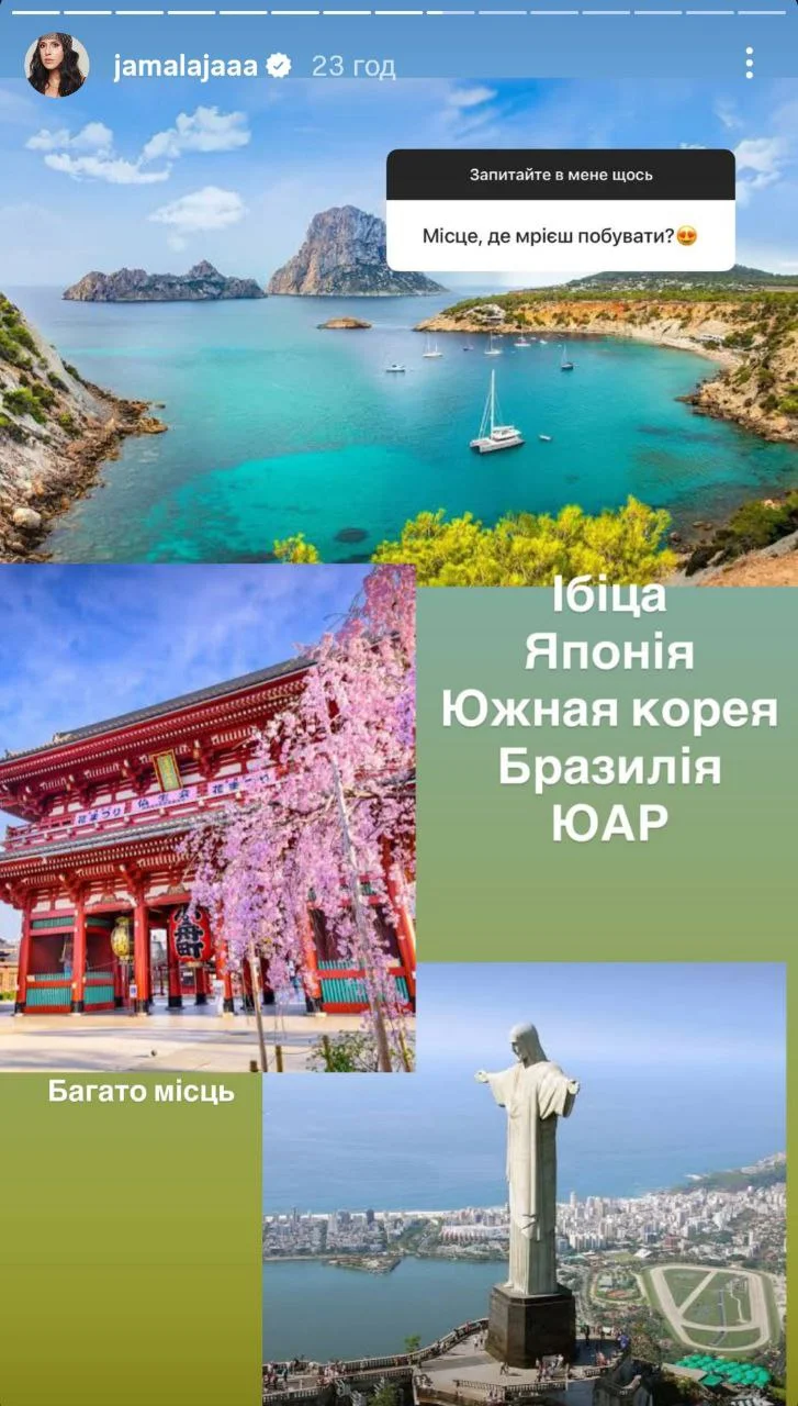 Отвечая на вопросы подписчиков в Instagram, звезда рассказала, какие уголки мира хотела бы посетить. Оказалось, что среди них не только популярная Ибица, но экзотическая Япония, яркие города Бразилии, загадочная Южная Корея и Южно-Африканская Республика.