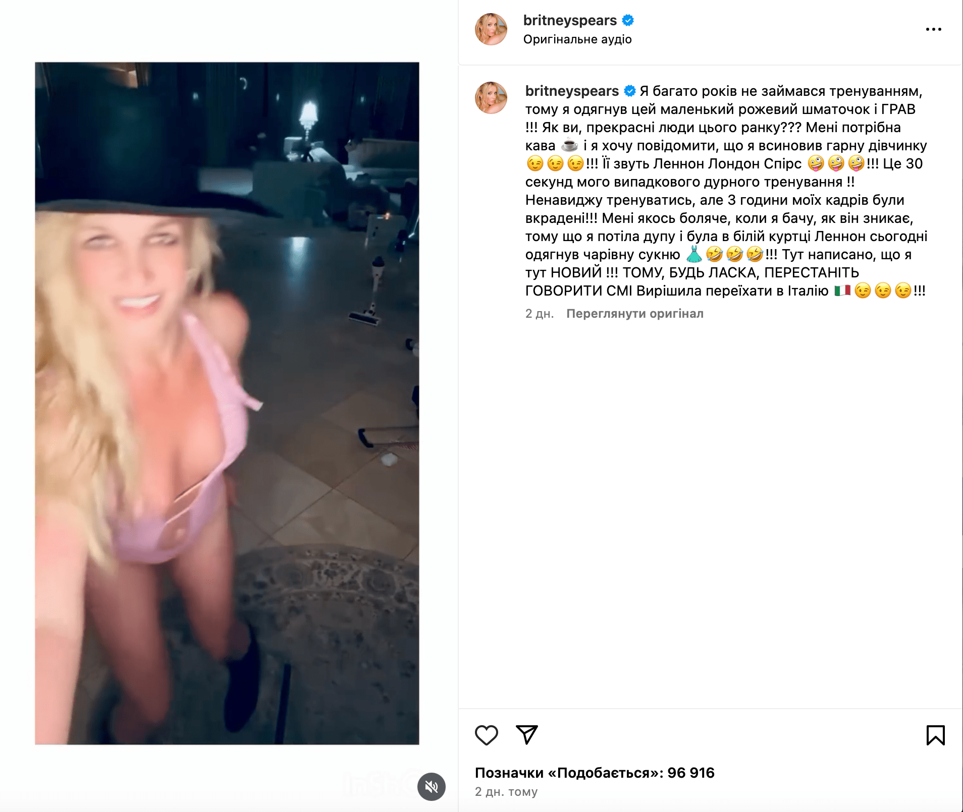На днях в своем Instagram 43-летняя артистка опубликовала очередное видео с танцами, где появилась в розовом боде. Но самым громким стало не само появление, а подпись: Спирс сообщила, что якобы усыновила девочку, которая теперь носит фамилию Спирс и одета в крошечное платье с надписью "Я тут новенькая!".