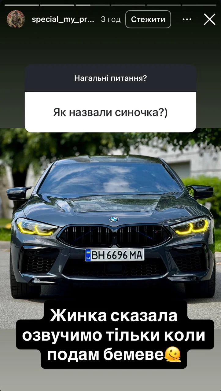 Да, Бабчук заявил, что они с Лесей Никитюк рассекретят имя сына. Впрочем, сделают они это при одном условии — когда военный продаст свой автомобиль BMW. Похоже, сейчас цена на него существенно повысится! 😁