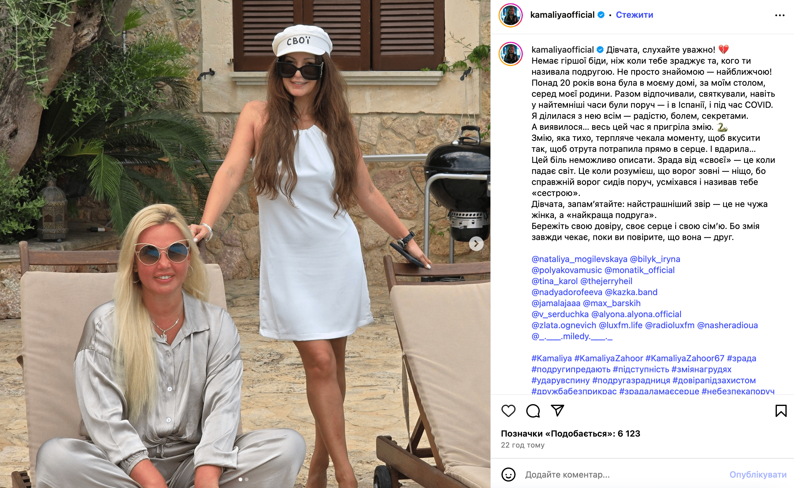 Нет хуже беды, чем когда тебя предает та, кого ты называла подругой. Не просто знакомой – ближайшей! Более 20 лет она была в моем доме, за моим столом, среди моей семьи. Вместе отдыхали, праздновали, даже в самые темные времена были рядом — и в Испании, и во время COVID. Я делилась с ней всем – радостью, болью, секретами. А оказалось… Все это время я пригрела змею. Змею, которая тихо, терпеливо ждала момента, чтобы укусить так, чтобы яд попал прямо в сердце. И ударила.