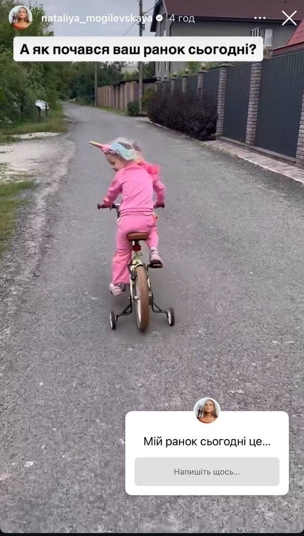 На кадрах, появившихся в Instagram исполнительнице, можно увидеть их утро. София в ярком розовом костюмчике уверенно крутит педали детского велосипеда, а рядом шагает улыбающаяся мама. Атмосфера семейного тепла сразу очаровала подписчиков. Именно во время этой прогулки Могилевская впервые продемонстрировала лицо младшей дочери.