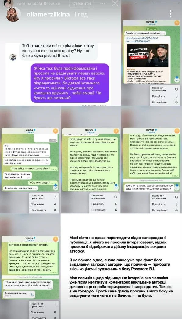 Еще одна громкая деталь касается утверждения, что Мерзликина якобы знала о выпуске скандального интервью и согласовала его публикацию без редактирования. Об этом, в частности, говорила сама Рамина Эсхакзай, отметив, что согласовывала с Ольгой детали.
