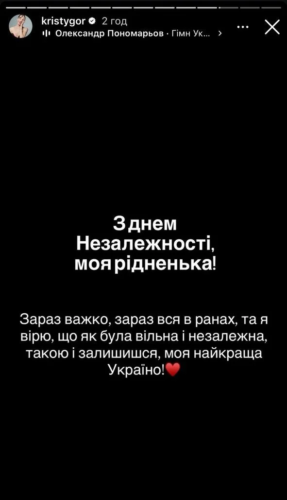 Кристина Горняк поздравила с Днем Независимости. Скрин: instagram.com/kristygor