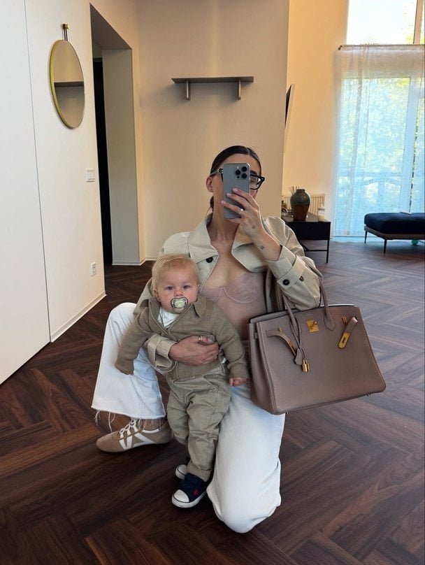 На снимках девушка позирует с аксессуаром в просторном доме вместе с сыном Тимофеем. Она пошутила, что такой подарок – сумка Hermès Birkin – станет универсальным и на Новый год, и на ближайшие дни рождения.
