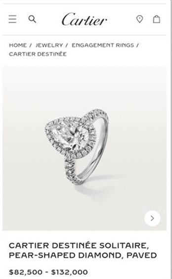 Украшение произвело настоящий фурор в Сети: на безымянном пальце Цветочной сияет бриллиант в форме капли, украшенный мелкими камешками. Это может быть изделие от бренда Cartier, стоимость которого колеблется от 58 до 145 тысяч долларов. Также украшение сродни модели Graff, цены которых стартуют от 8 тысяч долларов. Такие кольца очень популярны среди голливудских звезд.