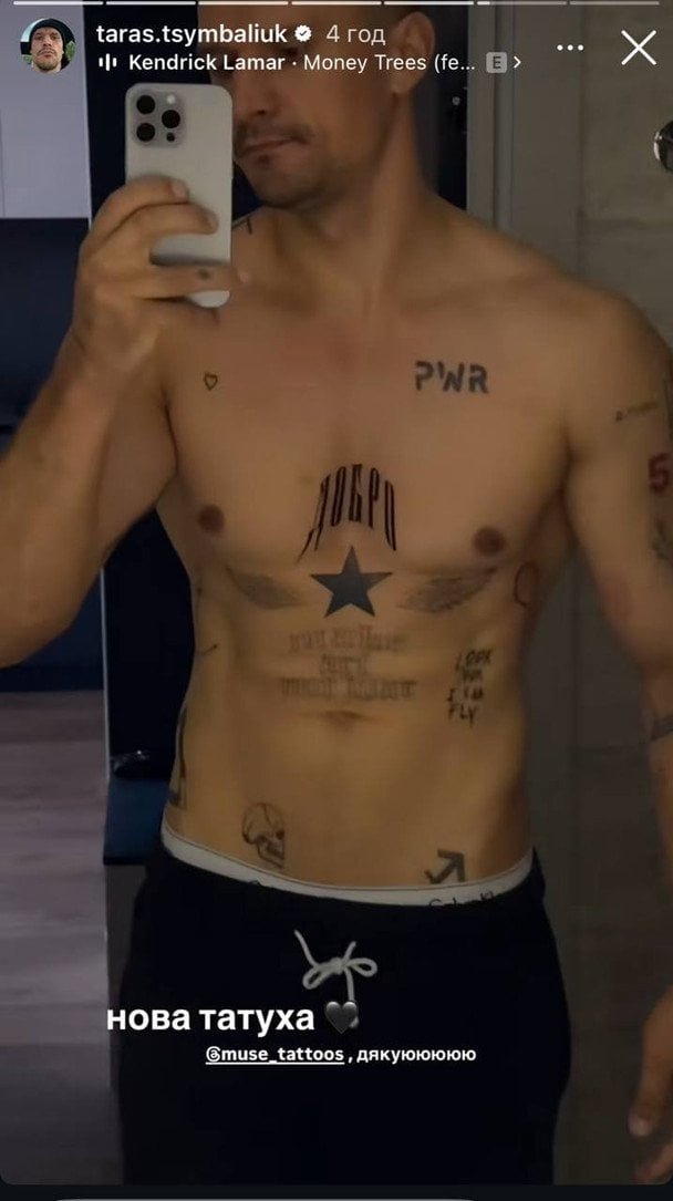 Еще в августе артист демонстрировал свежую татуировку с бабочкой и надписью о стремлении магии. И вот теперь, менее чем через месяц, Цымбалюк снова отправился к мастеру, чтобы оставить на своем теле еще одну особую отметку.