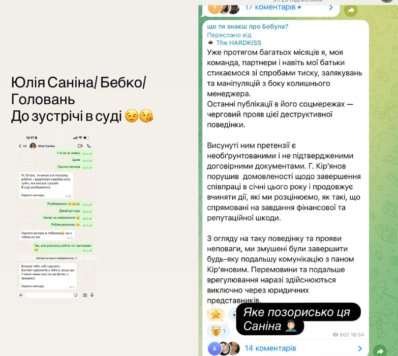 Но после громких заявлений The HardKiss не остались в стороне. Солистка Юлия Санина эмоционально прокомментировала эти упреки, отметив, что уже долгое время она, группа, партнеры и даже ее родители сталкиваются с многочисленными притеснениями, запугиваниями от бывшего менеджера, а его публикации — "очередное проявление деструктивного поведения" 👇: