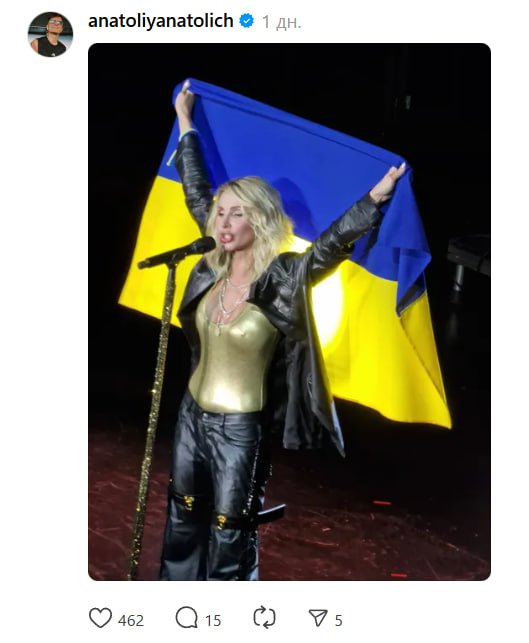 Впрочем, нашлись и те, кто защитил певицу. Кум Лободы и ведущий Анатолий Анатолич опубликовал фото 2023, на котором певица держит развернутый украинский флаг во время презентации украиноязычного альбома. Но на это не обратили внимания.