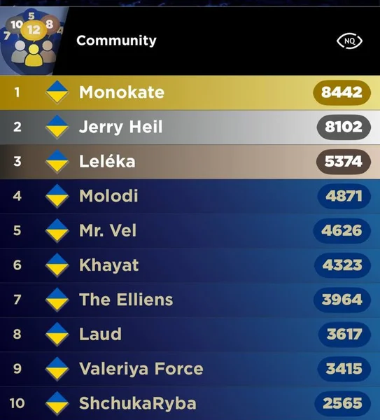 По состоянию на данный момент лидером рейтинга стала Monokate. В тройку также вошли Jerry Heil, уже представлявшая Украину на Евровидении-2024, и группа LELÉKA с меланхолической композицией. Любопытно, что аналогичная тройка фаворитов хранится и на сайте eurovisionworld, где Jerry Heil даже возглавляет рейтинг украинских песен.