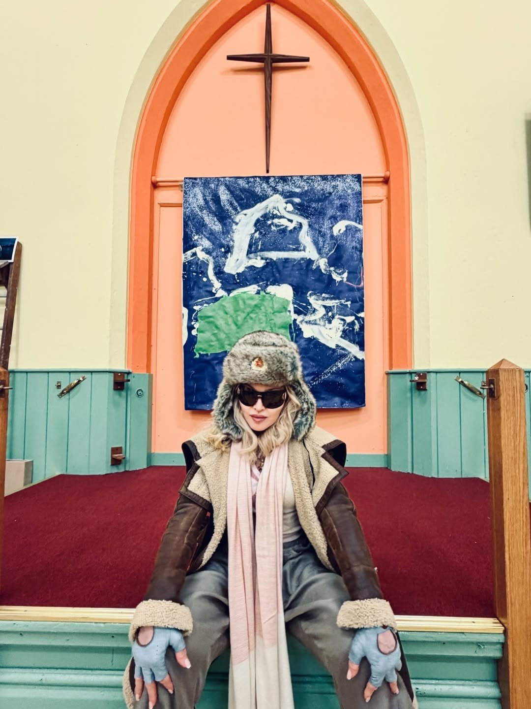 На своей странице в Instagram американская поп-икона распространила ряд фотографий с визита в художественную резиденцию Трейси Эмин в Великобритании, куда со всего мира приезжают художники и живут несколько месяцев. На кадрах Мадонна позирует в шапке-ушанке с красной звездой, серпом и молотом — советской символикой, которая ассоциируется с репрессиями украинского народа.