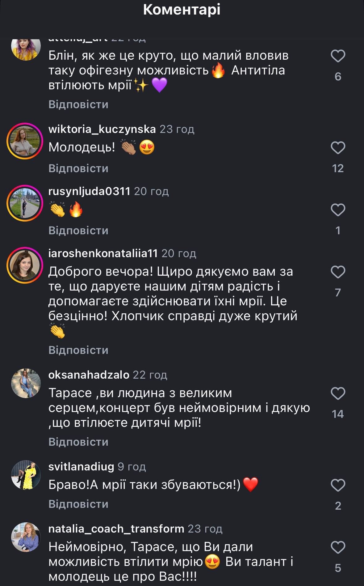 Тарас, вы человек с большим сердцем, концерт был невероятным и спасибо, что воплощаете детские мечты!