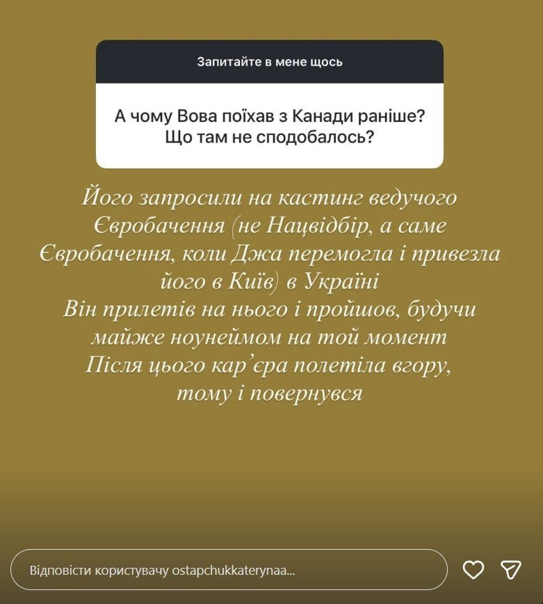 По словам его жены Екатерины, еще задолго до карьеры в украинском шоу-бизнесе Остапчук учился в Канаде. Там он получал образование, строил планы и, по сути, имел все шансы остаться. Однако тогда решил вернуться в Украину – и не просто так.