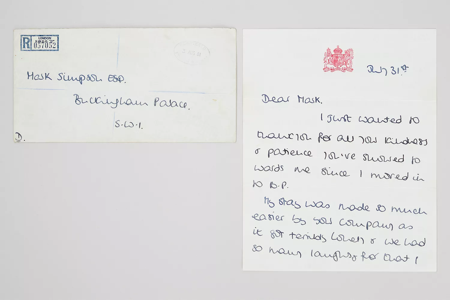 Известно, что письмо было адресовано лакею Марку Симпсону, с которым принцесса была особенно близка. По словам соучредителя Julien's Auctions Мартина Нолана, именно Марку Диана доверяла свои чувства, ведь они были почти одного возраста, и это создавало атмосферу доверия. В письме Диана благодарит лакея за поддержку и описывает, насколько тяжело ей было в первые дни после брака.