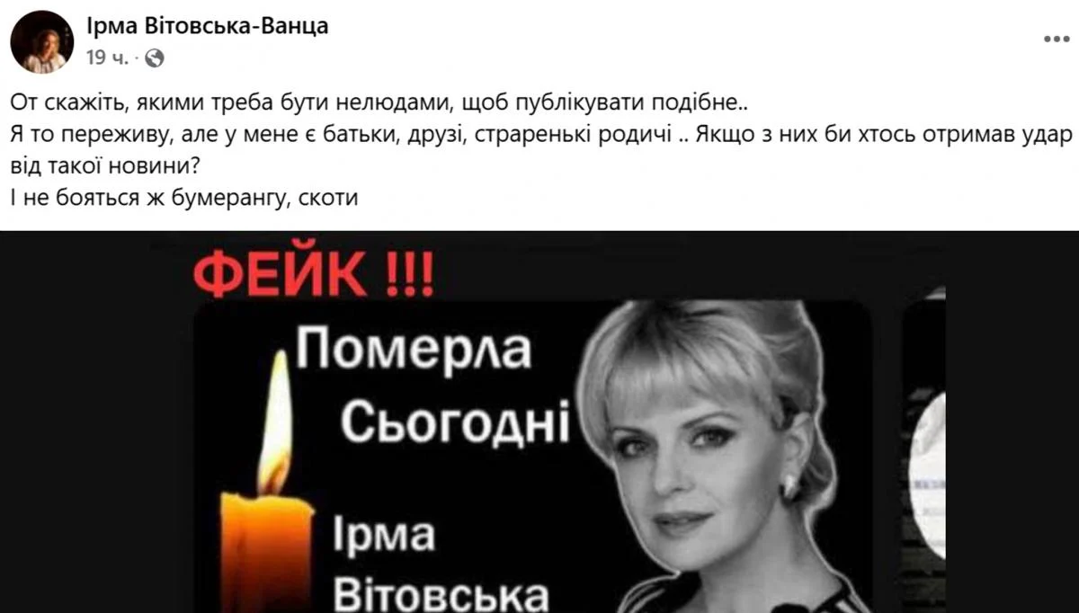 Актриса Ирма Витовская отреагировала на свою "смерть": "И не боятся же бумеранга, скоты"