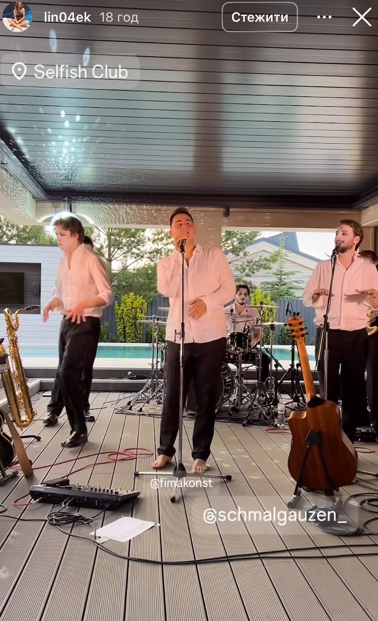 Среди гостей были и звездные друзья молодоженов, в частности ведущий Роман Мищеряков и резидент Stadium Night Ваня Кухарчук. А особым сюрпризом-подарком стало выступление группы Shmalgauzen, вместе с которой спел и сам Фима.