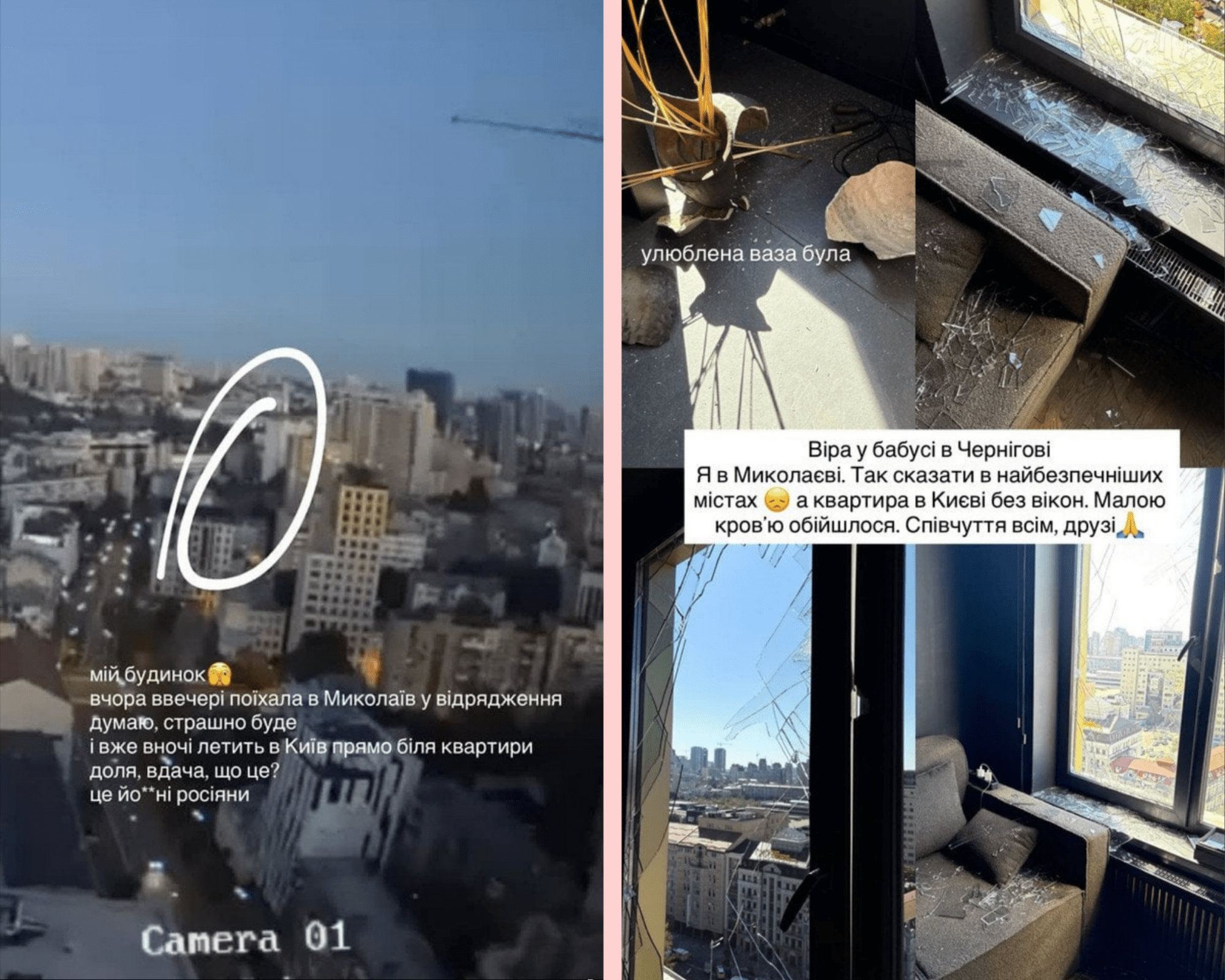 Мой дом... Вчера вечером (27 августа — прим. ред.) поехала в Николаев в командировку. Думаю, страшно будет. И уже ночью летит в Киев прямо у квартиры. Судьба, нрав – что это? Это его россияне. Вера у бабушки в Чернигове. Я в Николаеве. Так сказать, в самых безопасных городах. А квартира в Киеве без окон. Малой кровью обошлось. Соболезнование всем,