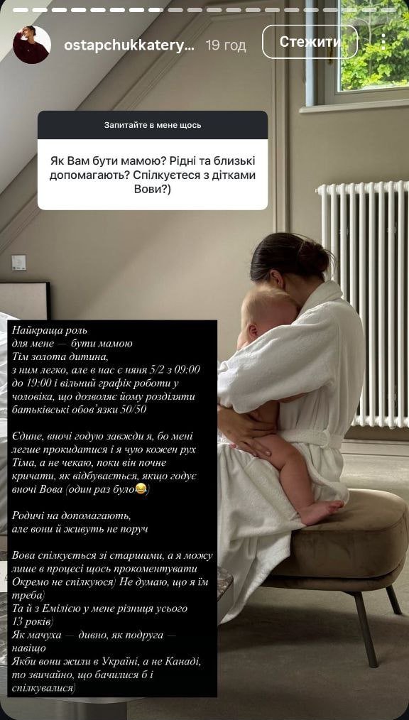 В stories Instagram Екатерина объяснила, что в уходе за сыном ей помогают мужчина и няня. Она подчеркнула, что имеет возможность уделять внимание своим делам благодаря поддержке, ведь родственники живут далеко.