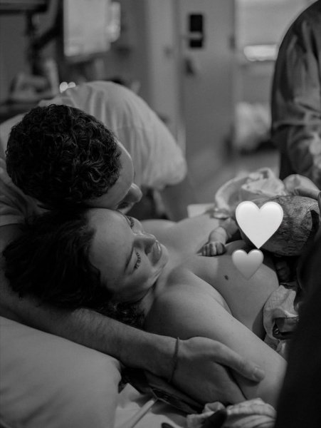 Новоиспеченная мама прикрыла лицо малышей смайликом. Имя дочери пара пока решила не разглашать.