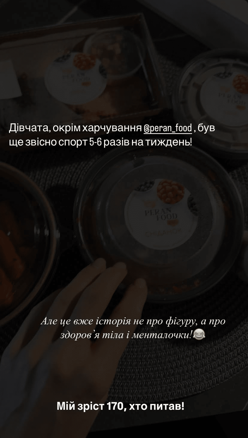 Так, Анастасии доставляли готовые и сбалансированные блюда в контейнерах. Она также брала их с собой, когда направлялась по делам, чтобы не пропускать приемы пищи.