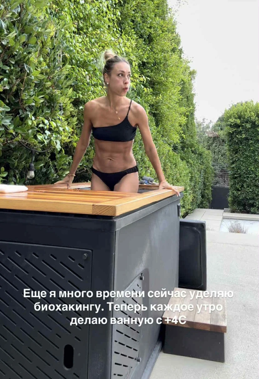 В своих Instagram Stories Саша рассказала, что активно практикует биохакинг. Ежедневно звезда начинает утро с погружения в ледяную воду, температура которой составляет +4°C.