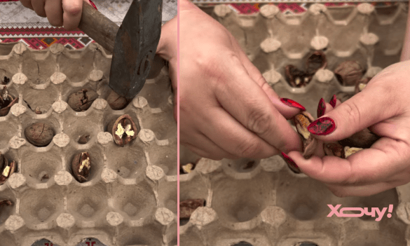 Берем лоток из-под яиц и чистим сразу все орехи: трюк для быстрого раскалывания (ВИДЕО)