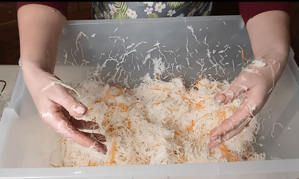 Кроме капусты и соли, автор рецепта советует добавлять морковь и небольшое количество сахара. Однако самая главная деталь – это именно пропорция соли к капусте.