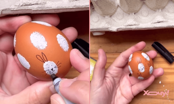 В блоге blog.estefi.machado показали, как украсить яйца симпатичными зайчатами. Нужно только чёрный фломастер и немного белой краски.