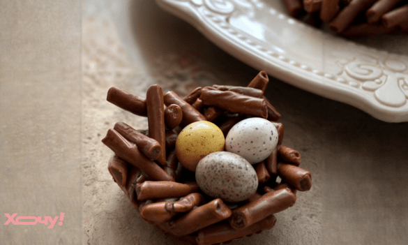 Есть немало способов украсить пасхальную выпечку. Прежде всего на ум приходит белая глазурь. Кстати, мы делились удачным рецептом. Теперь расскажем, как сделать красивые и нежные "гнезда" из соломки и шоколада.