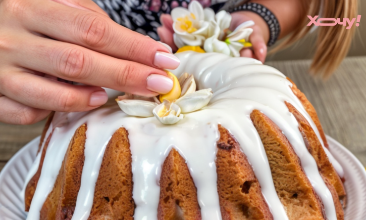 После выпечки даем кексу остыть и вынимаем его из формы. Можно украсить глазурью. Также мы рассказывали, как испечь пасхальный пляцок.