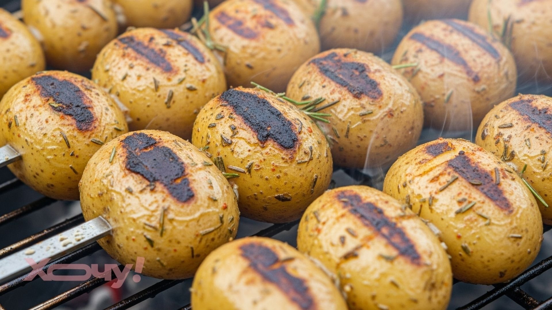 На шпажках (картофельный шашлык). Нанизывайте на шпажки, чередуя с овощами и кусочками мяса, и запеките или приготовьте на гриле.