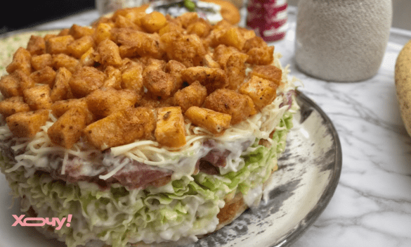 Салат очень сытный и вкусный. Он станет звездой праздничного стола. Также мы рассказывали, как приготовить шикарные бутербродики.