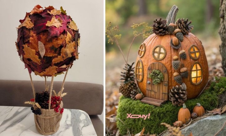 Для вас — нестандартные идеи поделок на осеннюю тематику. Их легко создать с детьми. Это уютное и полезное времяпрепровождение вместе, которое дарит хорошее настроение и развивает фантазию. А еще такое украшение может стать декором для вашего дома.