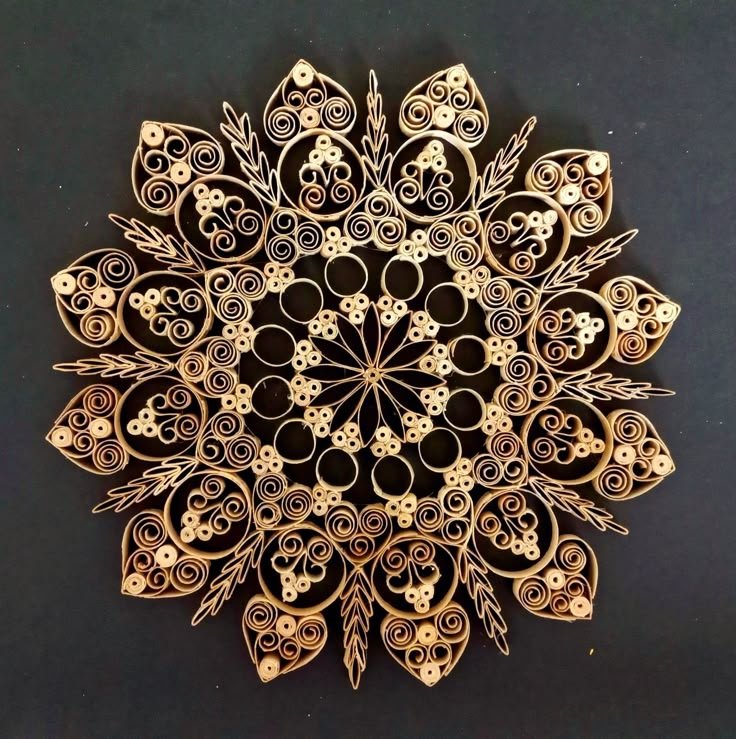 Шаг 3. Вырезанные частицы втулок скручивайте у улиток разной плотности. Скрепляйте кончики клеем. Далее эти кружевные кружочки вклеивайте в большие сплющенные частицы снежинки, сделанные на шаге 1.